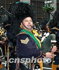 圖為在游行隊伍中專心演奏的愛爾蘭風笛手。