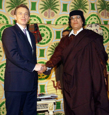 2004年3月--布萊爾訪利,他是自邱吉爾于二戰中訪利后首名到訪利比亞的英國首相。(固山)