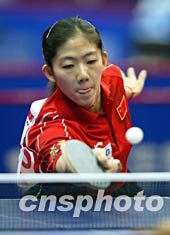 2004年雅典奧運會乒乓球亞洲區預選賽四月九日在北京舉行,中國隊女選手牛劍鋒首戰輕取對手。中新社記者:毛建軍
