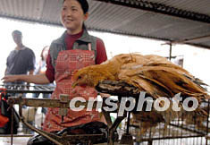四月十一日,北京一家農貿市場開始出售活禽。禽流感疫情已得到有效控制,在北京市各大農副市場中沉寂許久的“活禽區”,從十日起陸續恢復經營,但現場宰殺活禽仍然有嚴格的要求。中新社記者:張宇