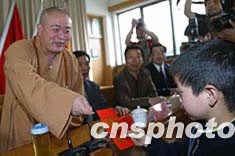 四月十七日,嵩山少林寺方丈釋永信大和尚在登封市向孤兒發放救助款,此舉標志著中國嵩山少林寺和河南省慈善總會聯合開展的“千名孤兒救助計劃”正式啟動。“千名孤兒救助計劃”是由嵩山少林寺與河南慈善總會共同發起組織的一項針對貧困孤兒的長期救助計劃。該項目在河南省內選出符合條件的一千名孤兒作為長期救助對象,并從救助的孤兒中挑選五十至一百名孤兒由非營利慈善機構“少林慈幼院”收養,對他們進行系統教育和培養。中新社記者:慎重