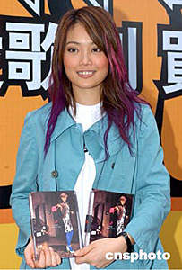 歌星容祖兒4月28日在香港商業電臺出席《id音樂維新》記者會,手持其個人音樂專輯,呼吁大家支持正版音樂。作者:鄧慶樂
