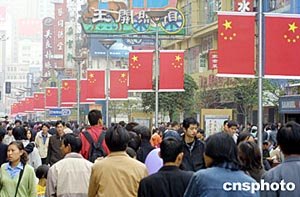 上海街頭國旗高掛慶“五一” (2004-05-01)