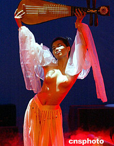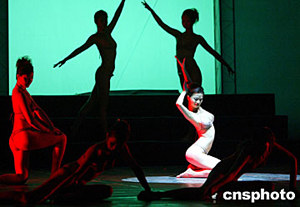歷經(jīng)風(fēng)風(fēng)雨雨的首屆中國“人體藝術(shù)模特大賽”五月三日晚在重慶市郊一家小劇院“悄悄地”舉行,十五名經(jīng)過預(yù)賽和培訓(xùn)的男女模特參加歷時(shí)倆個小時(shí)的比賽,女模特用不全裸的“中國方式”表演中國舞蹈“飛天”,盡情展示人體之美。中新社記者:任晨鳴