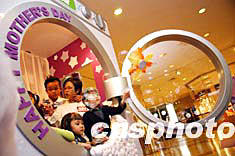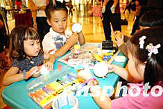 5月6日,香港海港城舉辦“母親節率先表愛意”活動,小朋友與母親一起制作徽章享受溫馨快樂時刻。作者:洪少葵