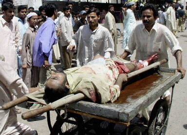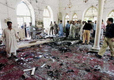 中新網(wǎng)5月7日電 巴基斯坦南部港口城市卡拉奇的一座清真寺7日遭遇炸彈爆炸,目前死亡人數(shù)上升至13人,另有大約50人受傷。當(dāng)天,巴總統(tǒng)穆沙拉夫強(qiáng)烈譴責(zé)了此次爆炸事件。