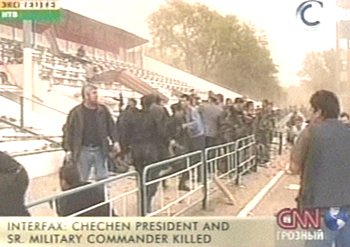 俄車臣格羅茲尼狄納莫體育場(chǎng)爆炸現(xiàn)場(chǎng)。(CNN電視截圖)