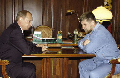 普京(左)在克里姆林宮接見(jiàn)卡德羅夫的兒子