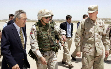 拉姆斯菲爾德閃電訪伊 否認(rèn)此行為虐俘事件降溫