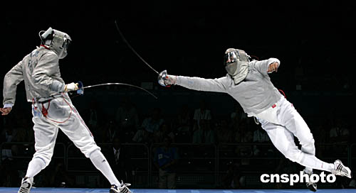 在當地時間8月19日舉行的男子配劍團體賽中,法國隊戰勝意大利隊奪得冠軍。圖為兩隊選手比賽時場面。