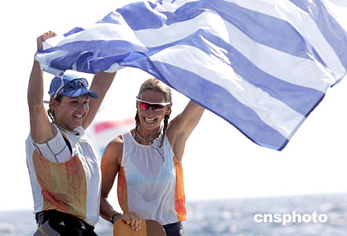 在當地時間舉行的女子470級帆船帆板比賽中,希臘選手BEKATOROU SOFIA和SOULFA AIMILIA榮獲冠軍。