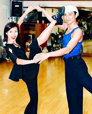 劉德華在彩排現場示范部分舞步,其中一名女舞蹈員踢腿到他頭上,劉德華笑謂對方是跳爵士舞的,大家合作得很好。(新京報圖)