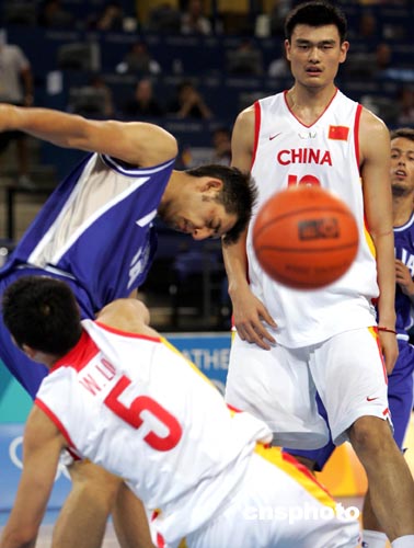 雅典當地時間8月21日下午,中國男籃在本屆奧運會小組賽的第四場比賽中與歐洲勁旅意大利隊相遇,姚明獨木難撐,最后以52比89負于意大利隊,基本失去了進入前八名的可能。中新社記者:任晨鳴