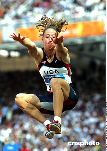 圖為在當地時間8月21日舉行的女子七項全能跳遠項目比賽中,蒂法內-洛特-霍甘(Tiffany Lott-Hogan)的出色表現。