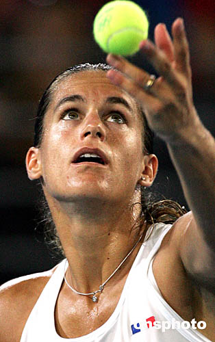 圖為在當地時間8月21日舉行的奧運會女單決賽中,法國網壇名將毛瑞斯莫不敵比利時選手海寧屈居亞軍。