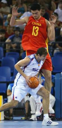 更為重要的是,中國男籃今天在失誤和籃板球方面較前幾場比賽有了較大改觀。在姚明的帶動下,中國隊較好地控制了自己的后場籃板,并在前場籃板球方面沖搶積極,給塞黑隊進攻造成了相當?shù)男睦韷毫Α?/p>