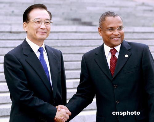 中新社北京八月二十四日電 (記者 朱大強)中國國務院總理溫家寶今天在人民大會堂與佛得角總理內(nèi)韋斯舉行會談,雙方一致表示愿共同努力,推動兩國關(guān)系全面發(fā)展。