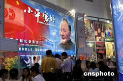 八月二十六日,正在北京舉辦的“中國國際影視節目展”上,大型文獻紀錄片《小平您好》的巨幅海報吸引眾多參觀者的目光。中新社記者:張勤