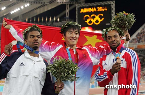 中新社雅典八月二十七日電(記者 沈晨 宋方燦)上海小將劉翔今晚在奧運會男子一百一十米欄決賽中以十二秒九一勇奪冠軍,平了該項目的世界紀錄并創(chuàng)造新的奧運會紀錄,成為首位在奧運會田徑短距離競技項目中奪冠的中國運動員。