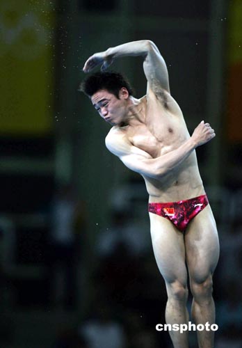 第一個動作,四人之間就展開了激烈的爭奪。但技高一籌的田亮將難度系數為三點四的動作發揮得淋漓盡致,獲得九十五點八八的高分,他也因此占據了榜首的位置,領先排名第二的德斯帕蒂九點零六分,胡佳、赫爾姆分列第三和第四。