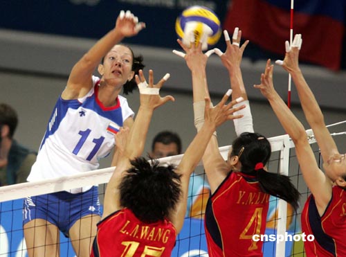 在雅典奧運會女排賽中,中國女排以進攻強、防守好、戰術靈活多變等特點獨領風騷,特別是與俄羅斯隊的決賽中,在先失兩局的情況下,不慌不亂,連扳三局,取得了最終的勝利,再次奪得了奧運會金牌。