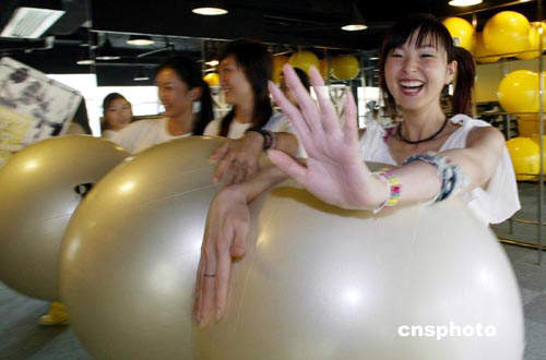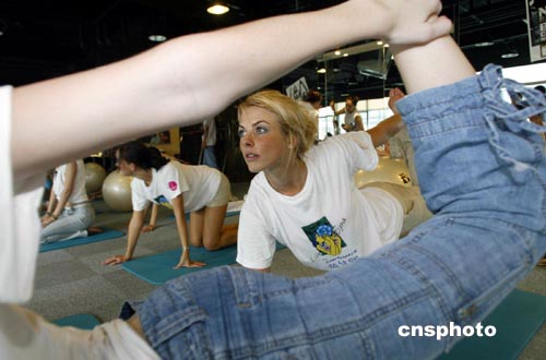 圖為參加模特大賽的國外參賽選手在練習瑜珈。