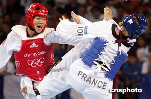 在今晚的奧運會跆拳道女子六十七公斤以上級決賽中,陳中以十二比五戰勝法國選手巴維爾,不僅獲得個人奧運史上的第二枚金牌,而且令中國軍團在雅典奧運會上的金牌總數鎖定在三十二枚,穩居金牌榜次席。