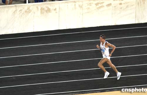 圖為在當地時間29日進行的男子馬拉松比賽中,獲得冠軍的意大利選手巴爾蒂尼。