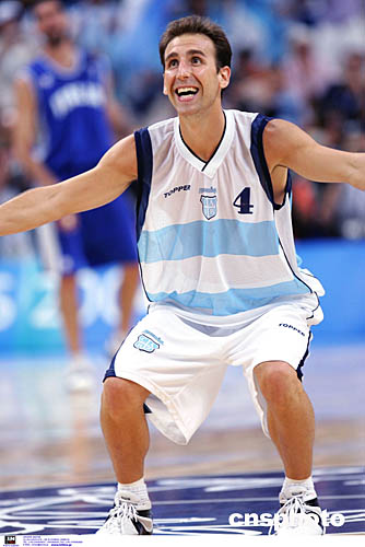 圖為阿根廷男籃在奪得冠軍后,4號桑切斯(Juan Ignacio Sanchez)欣喜若狂。