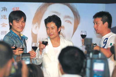 黃磊和成泰燊相識很長時間了,昨天老友出征,忙碌于自己新電視劇《夜半歌聲》籌備工作的黃磊也抽出時間,為好友加油。黃磊說,成泰燊是一個演戲不露痕跡的職業演員,非常出色。雖然沒有看過《世界》,但黃磊對這部戲也非?春。說到自己的新作《夜半歌聲》時,黃磊說,做這部電視劇的最主要原因是,當年自己拍了電影版,現在電影過去10年了,回憶也好、喜歡這個題材也好,都應該再拍一部了。耿樂是在拍攝電視劇《七日》的時候和成泰燊熟識的,“泰演戲特別好,這次我們都希望他和他的電影《世界》能有一個好收獲回來!毙枪馄煜碌闹嚾烁邎A圓、王艷昨天也到場助陣,幾位好友都用香檳祝!妒澜纭穭〗M,希望他們在雅典奧運之后,再次為中國人爭光。(記者任嫣)