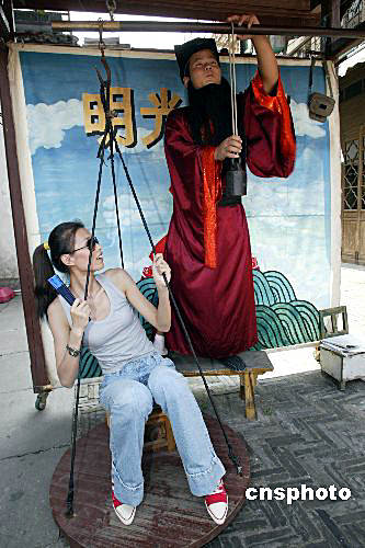 世界模特大賽中國(guó)參賽選手試稱“公平秤”