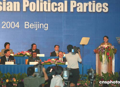 第三屆亞洲政黨國際會議九月三日在北京開幕,中共中央政治局常委、中國國家副主席曾慶紅出席開幕式并發表演講。中新社記者:滿會喬