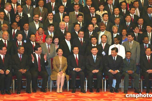 中新網(wǎng)9月3日電 中共中央總書記、國家主席胡錦濤今天下午在人民大會堂會見了來京出席第三屆亞洲政黨國際會議的部分來賓并同全體代表合影留念。