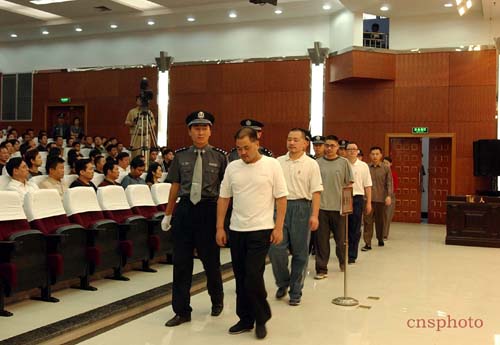 重慶市第二中級(jí)人民法院對(duì)重慶開(kāi)縣“12.23”井噴事故案做出一審判決。圖為宣判現(xiàn)場(chǎng)。(中新網(wǎng)圖)