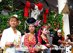 身穿各個民族服裝的旅游宣傳推銷員,成為九月三日在山東省城濟南開幕的二00四中國(濟南)國際旅游交易會上的一大亮點。作者:宋衛東