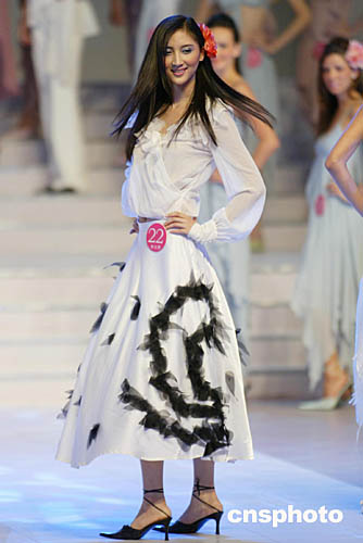 9月5日晚,“時尚杭州之旅·2004年新絲路世界模特大賽”在浙江省人民大會堂舉行,來自二十八個國家的四十七名選手將參加小禮服、泳裝、晚裝展示、情景劇表演以及系列專業(yè)技能展示的比賽。中新社記者:盛佳鵬