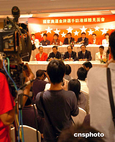 馬不停蹄的金牌選手們,下午在其入住的酒店安頓不久,便出席媒體見面會。代表團團長、國家體育總局局長袁偉民表示,金牌運動員訪港已成慣例,他在雅典奧運結束回國后,首先想到的便是要到港澳,與同胞分享贏取金牌的喜悅。他說,香港市民向來對國家運動員十分支持,今次運動員來港的表演,門票亦迅即售罄,反映港人的愛國熱情,令他非常感動。
