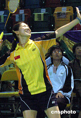 為歡迎國家奧運金牌代表團訪港,九月八日香港舉行“中國人的驕傲--奧運金牌精英顯風采”奧運金牌羽毛球及乒乓球表演。圖為奧運羽毛球金牌運動員為觀眾進行示范表演。作者:錢興強