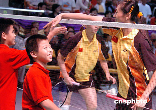掀起一陣“追國寶風”的國家奧運金牌選手們,今日在訪港行程最后一天,繼續(xù)與全港市民近距離接觸,為市民帶來精彩的示范表演。下午,在灣仔伊利沙伯體育館,數(shù)千市民以熱情回饋一眾羽毛球及乒乓球金牌得主,為他們的訪港之行留下難忘的回憶。