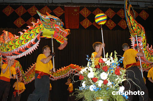 當地時間九月十二日,華盛頓中國留美學生與外國人共同舞龍迎接中秋佳節來臨。作者:余東暉
