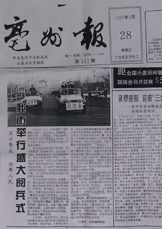 媒體稱6年前《亳州報》曾記述市委書記閱兵"盛況"