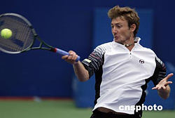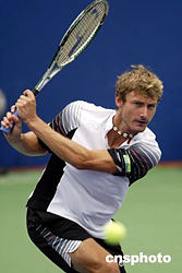 九月十五日,中國(guó)網(wǎng)球公開賽ATP男子單打比賽在北京網(wǎng)球中心的中央球場(chǎng)進(jìn)行,在兩次因雨暫停之后,西班牙選手費(fèi)雷羅(見圖)最終以二比零戰(zhàn)勝美國(guó)選手基梅爾托博。中新社記者:盛佳鵬