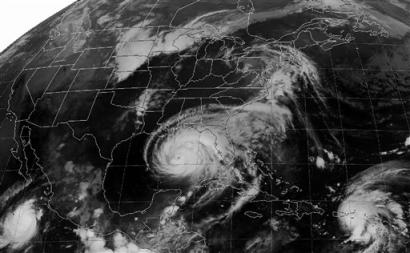 中新網9月15日電 據美聯社報道,颶風“伊萬”即將登陸美國東南部沿海。當地政府正努力說服上百萬居民盡快疏散至安全地帶。圖為美國東部時間15日凌晨5點的衛星云圖,圖片中央白色云圖即為“伊萬”颶風。(固山)