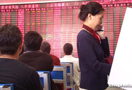 受利好消息的良性影響,九月二十日(周一),中國滬深股市大盤呈現出放量上漲的滿堂紅景觀。該日,北京股民神態自若地在證券營業部內進行交易。當日兩市共成交約419億,比上一個交易日明顯放大。其中上證指數漲跌幅達+3.43%;上證B股指數漲跌幅達3.46%;深證成指漲跌幅達3.76%;深證成份B指漲跌幅達4.07%。中新社記者:鄒憲