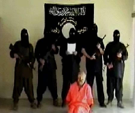 據英國媒體報道,錄像顯示是與卡伊達組織有聯系的伊拉克極端份子扎卡維親自執行斬首。