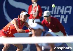 北京時間9月21日,中國網球公開賽的WTA賽事的女雙比賽繼續進行,結果在一場引人注目的女雙比賽中,三號種子俄羅斯選手莎拉波娃和茲沃娜列娃組合爆大冷,以6-1,3-6和4-6輸給了非種子選手日本選手藤原理香和淺越喜羅布組合,首輪就慘遭淘汰。中新社記者:武仲林
