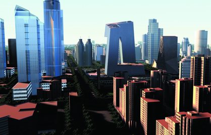 CCTV主樓的兩個塔樓從一個共同的平臺升起,在上部匯合,形成三維體驗,突破了摩天樓常規的豎向特征的表現。復雜的功能包容在內部緊密連接的環路中,體現一個相互合作、相互依存的鏈條以及自身組織的有序和協調。