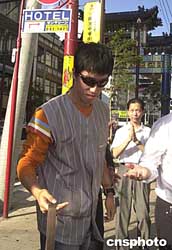 前來橫濱參加二00四國際田聯(lián)全明星大獎賽的劉翔,二十二日在抵達賽地之前來到橫濱中華街,為正在這里舉行的“揚帆青島,相約奧運”巡回展助陣,因為怕驚動游客而耽擱他接下來的賽前訓練,戴著墨鏡的劉翔在中華街朝陽門的牌樓前匆匆而過。但依然有眼尖的僑胞認出,在一旁為其能在大獎賽中再有出色表現而默默祈愿。中新社記者:王健