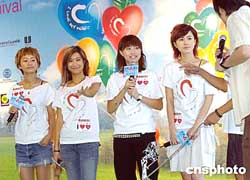 香港音樂組合COOKIES四名成員, 9月26日在香港跑馬地馬場(chǎng)出席 “世界心臟日2004”,并登臺(tái)表演助興。作者:洪少葵