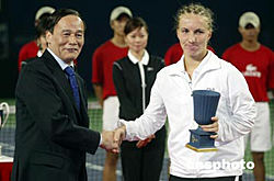 圖:王岐山為庫茲涅佐娃頒發女單亞軍獎杯